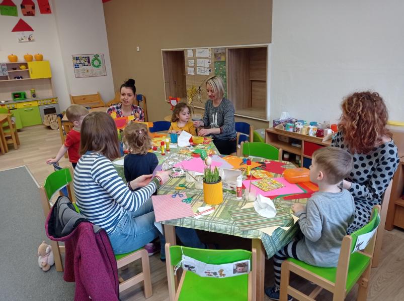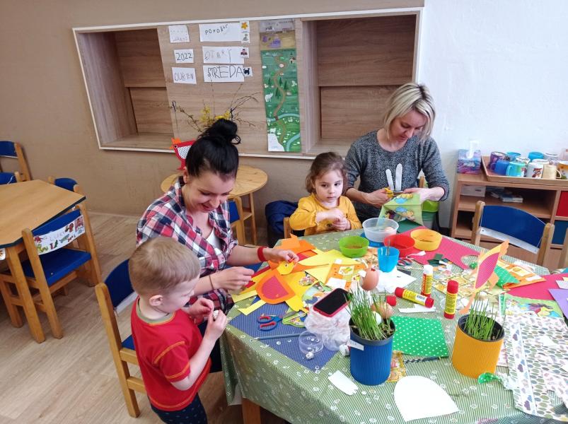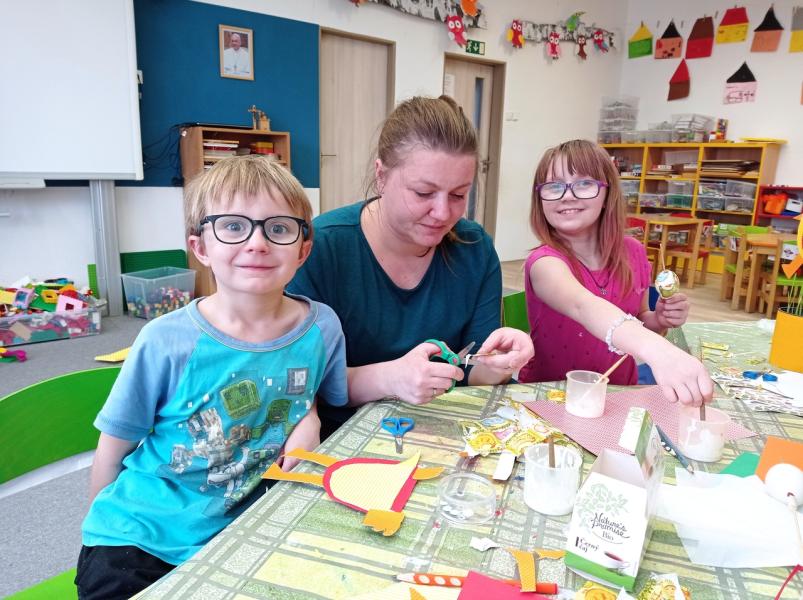 Znáte ten pocit, když vás něco baví? Jakoby se zastavil čas... třeba u tvoření a vyrábění! A ještě když je to společně se svými dětmi, je to sranda a je to fajn :) Jsme rádi, že jsme se mohli společně sejít ve středu 6. dubna 2022 po dlouhé covidové pauze u nás ve školce. A bylo to opravdu příjemné setkání! Rádi jsme přivítali starší i mladší sourozence, kteří přišli společně s maminkami a do vyrábění se také zapojili. Společně jsme vyráběli velikonoční slepičku a vajíčka, které si pak každá rodina v osení a na větvičce odnesla domů.